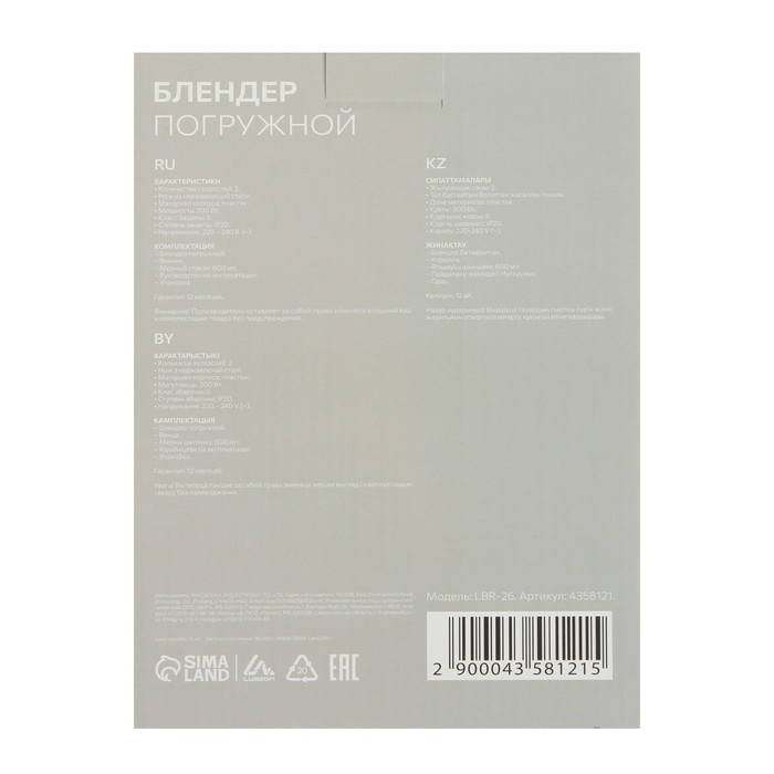 Блендер LuazON LBR-26 предназначен для измельчения и смешивания продуктов питания. Может перемолоть мягкие и твердые продукты.