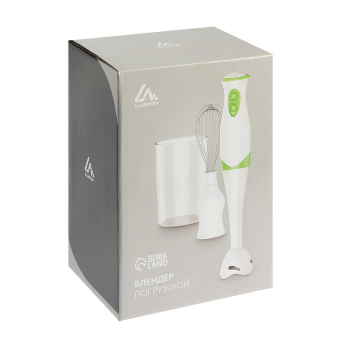 Блендер Luazon LBR-26, погружной, 300 Вт, 0.6 л, 2 скорости, бело-зеленый