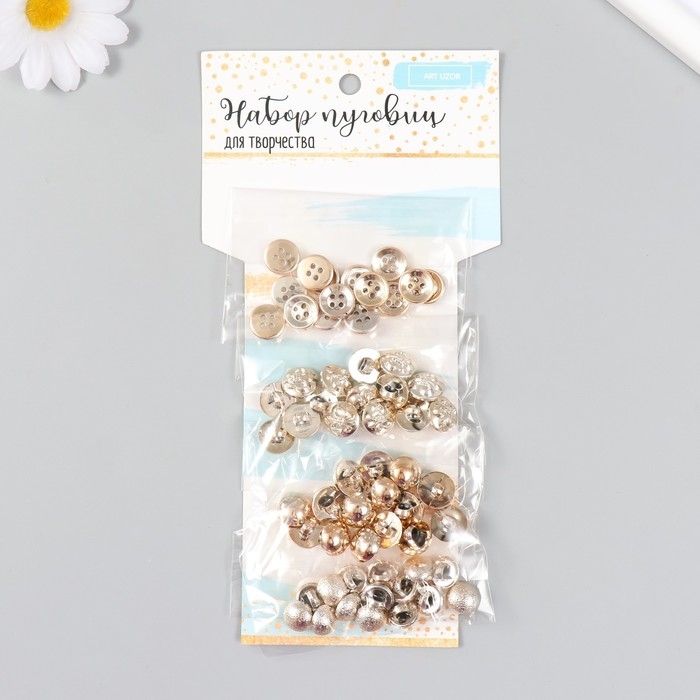 Пуговицы для творчества пластик "Золотое ассорти" набор 4 вида х 15 шт 20х10 см