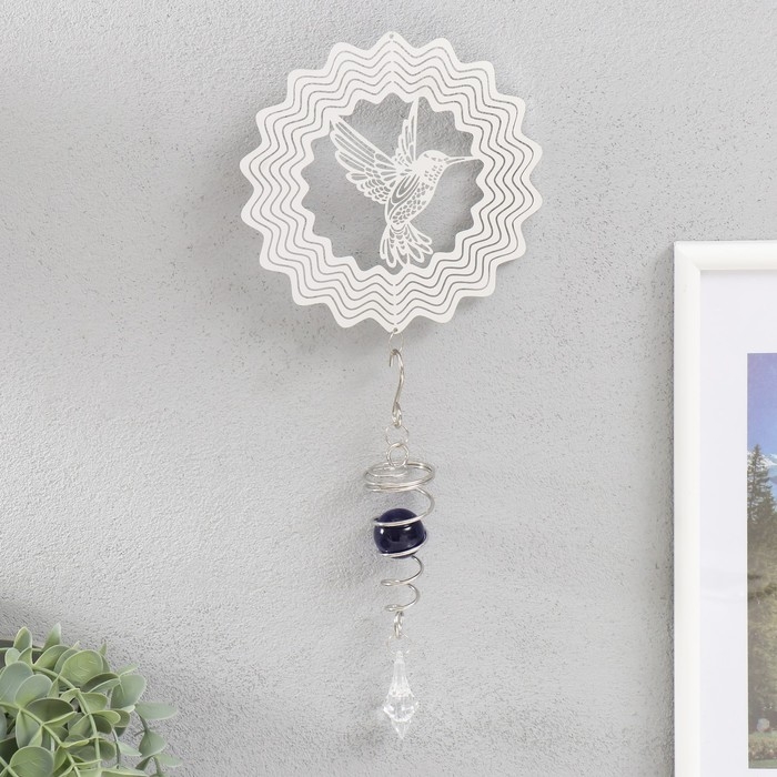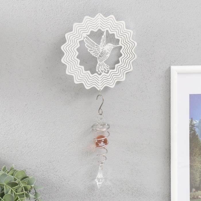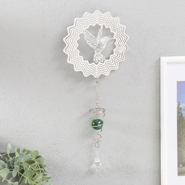 Ветряной колокольчик металл 3D "Колибри" с бусиной 13,5х13,5х31 см