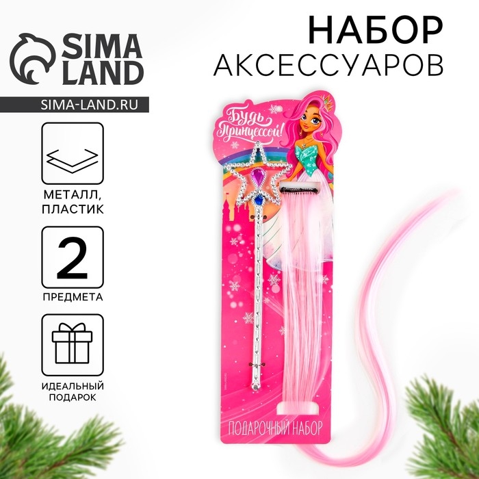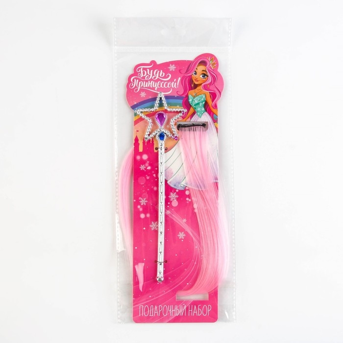Волшебная палочка и цветная прядь для волос новогодние «Будь принцессой» на Новый год, набор