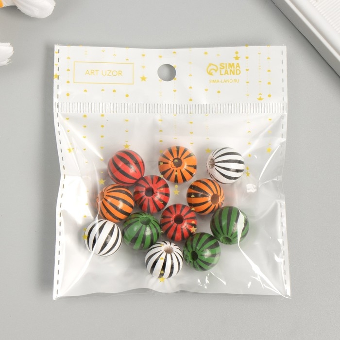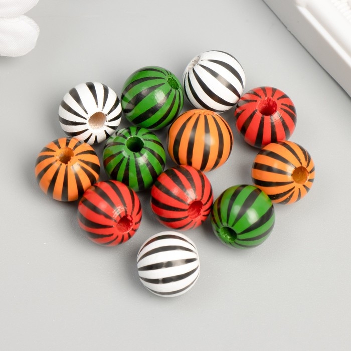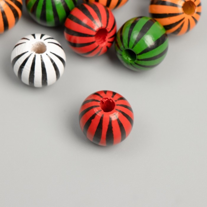 Бусины дерево для творчества "Круглые. Полосочки" d=1,6 см набор 12 шт