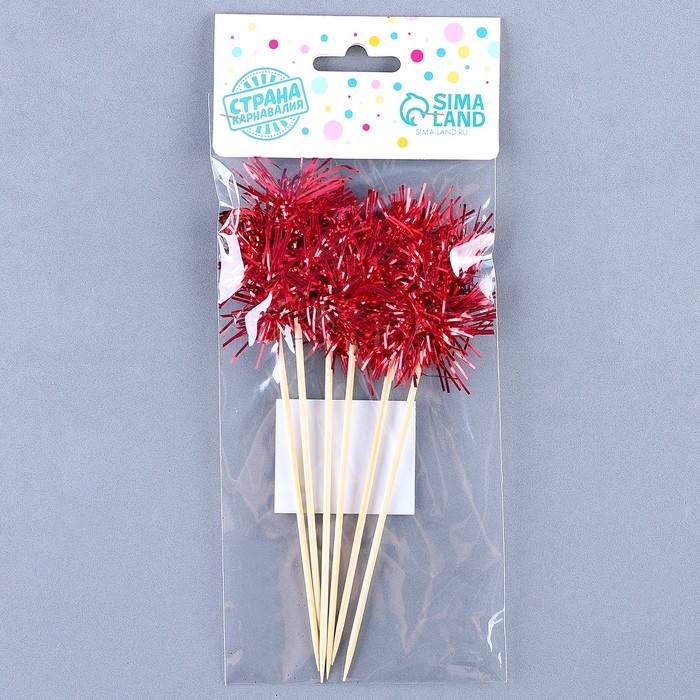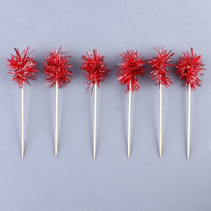 Шпажка для канапе «Пушистик», в наборе 6 штук, цвет красный
