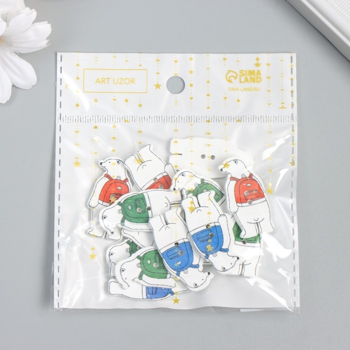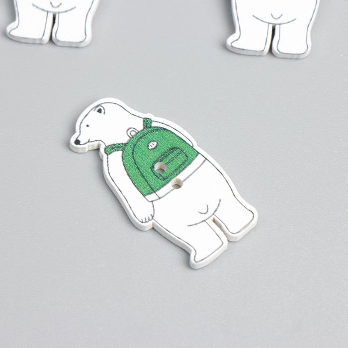 Пуговицы дерево для творчества 2 прокола "Медведь с рюкзаком" набор 15 шт 1,6х3,5 см