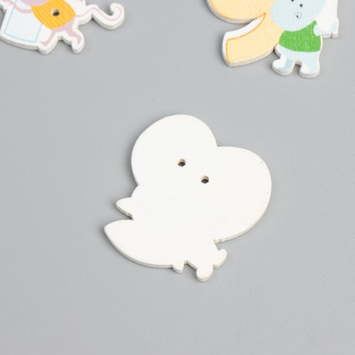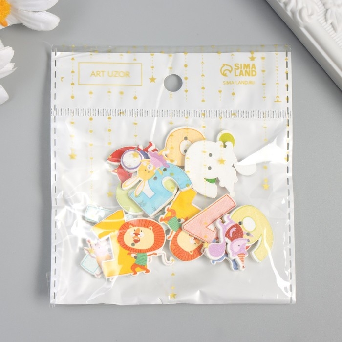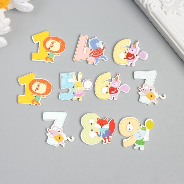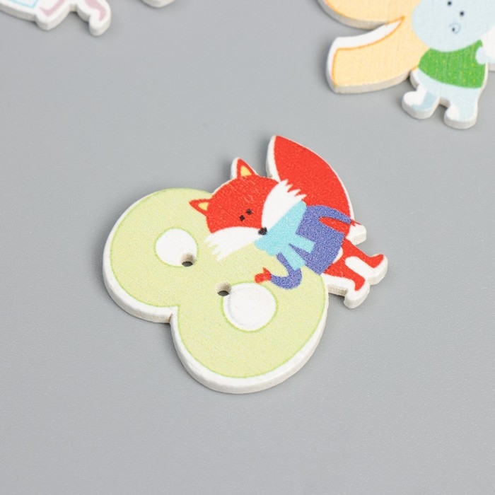 Пуговицы дерево для творчества 2 прокола "Зверята и цифры" набор 10 шт 2,8х2,8 см