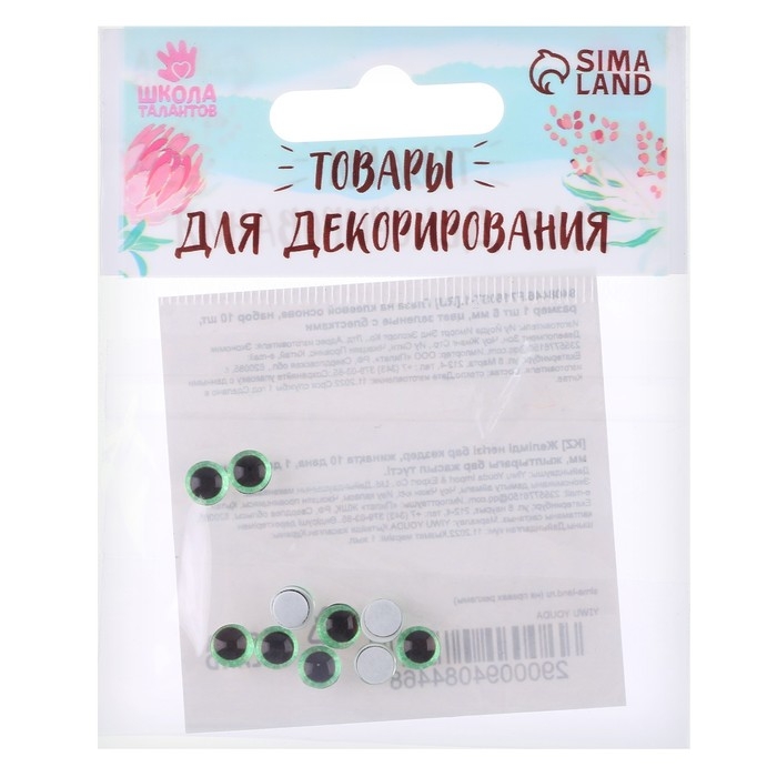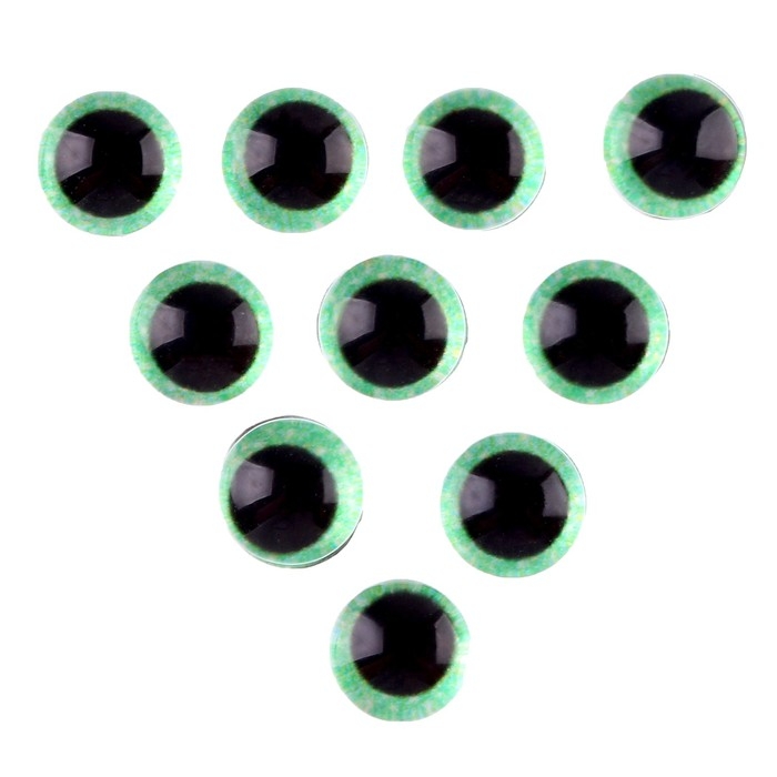 Глаза на клеевой основе, набор 10 шт., размер 1 шт. — 6 мм, цвет зелёный с блёстками