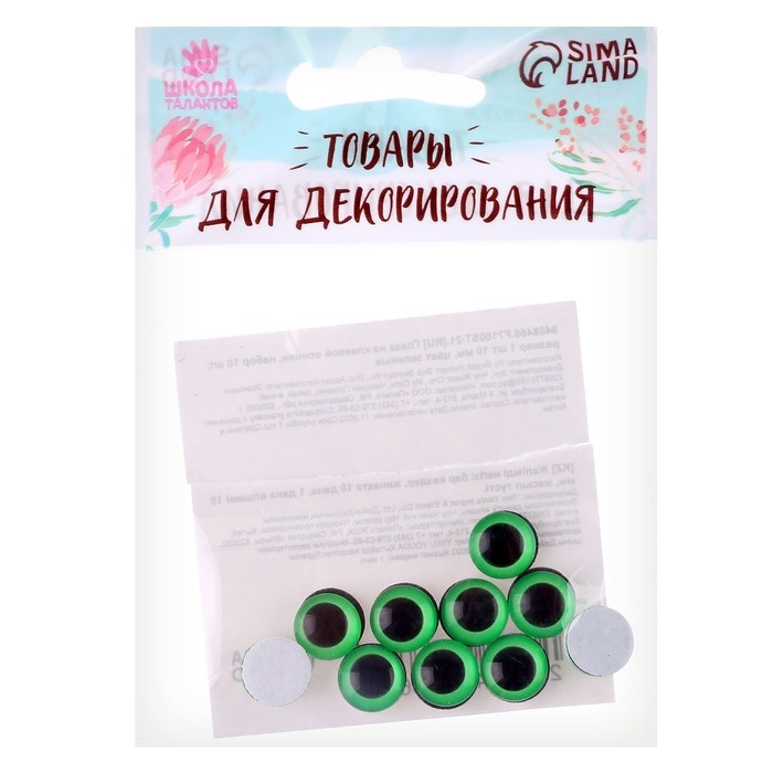 Глаза на клеевой основе, набор 10 шт., размер 1 шт. — 10 мм, цвет зелёный