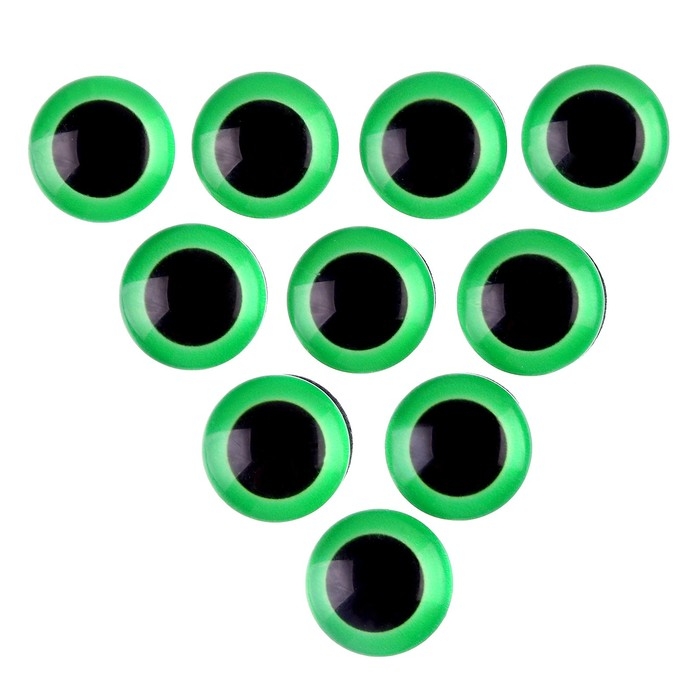 Глаза на клеевой основе, набор 10 шт., размер 1 шт. — 18 мм, цвет зелёный