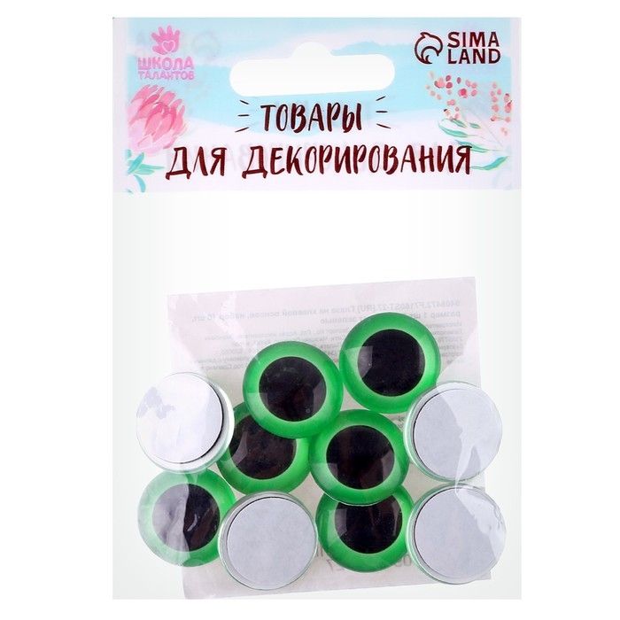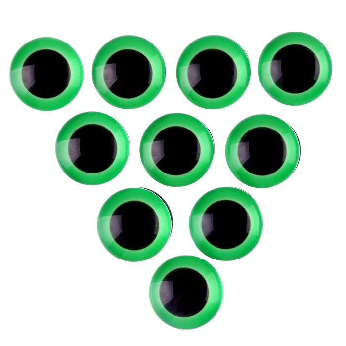 Глаза на клеевой основе, набор 10 шт., размер 1 шт. — 20 мм, цвет зелёный