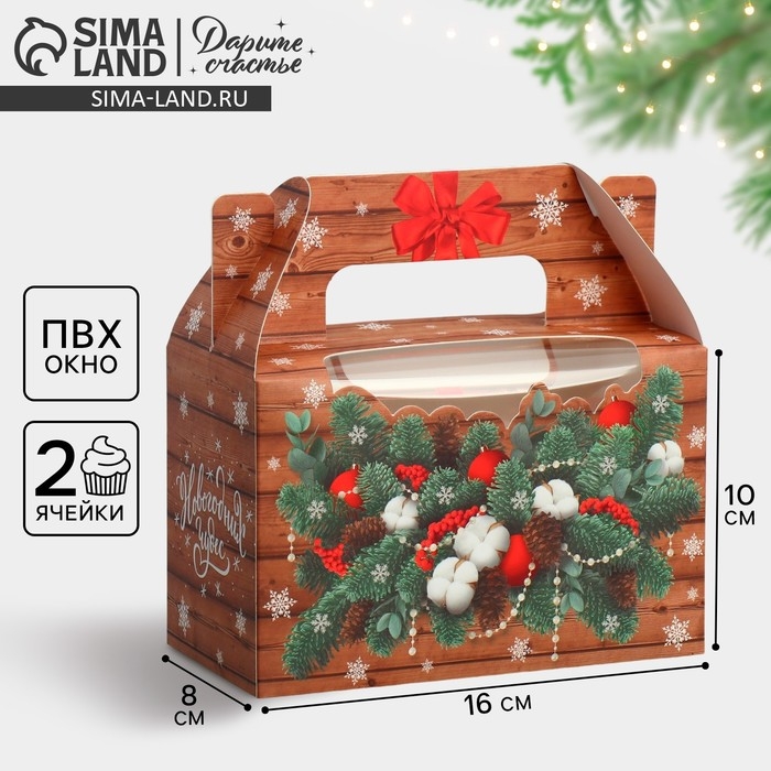 Коробочка для кексов «Новогодних чудес», 16 х 10 х 8 см, Новый год