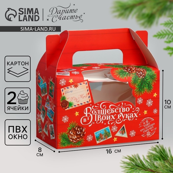Коробочка для кексов «Волшебство в твоих руках», 16 х 10 х 8 см, Новый год