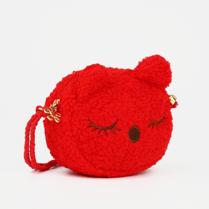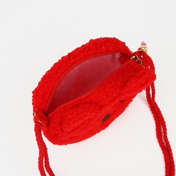Сумка детская для девочки на молнии, длинный шнурок, цвет красный