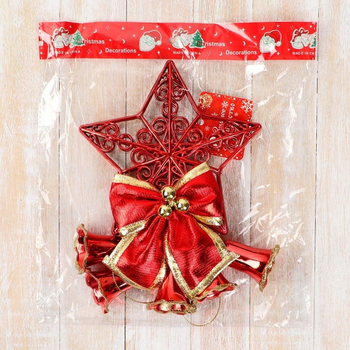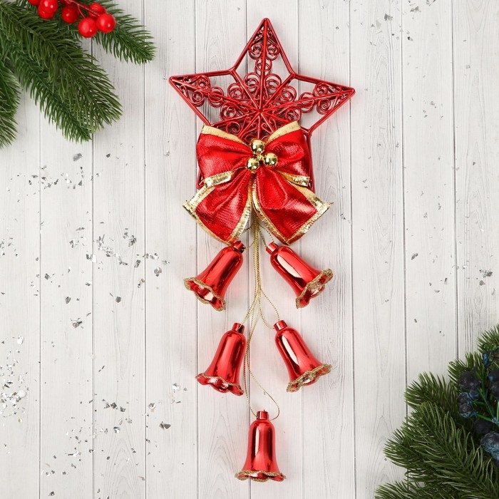 Украшение новогоднее "Уютная сказка" колокольчики узорная звезда, 12х36 см, красный