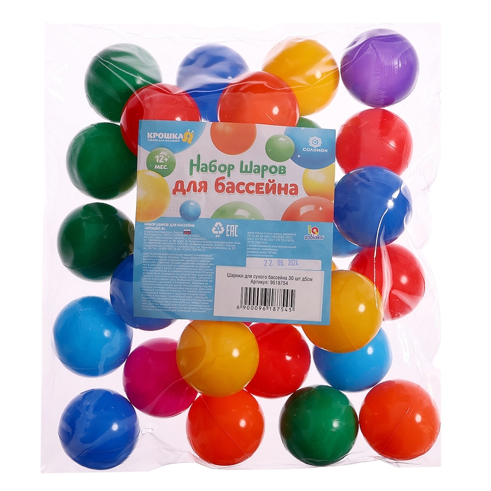 Шарики для сухого бассейна, 30 штук, диаметр — 5 см