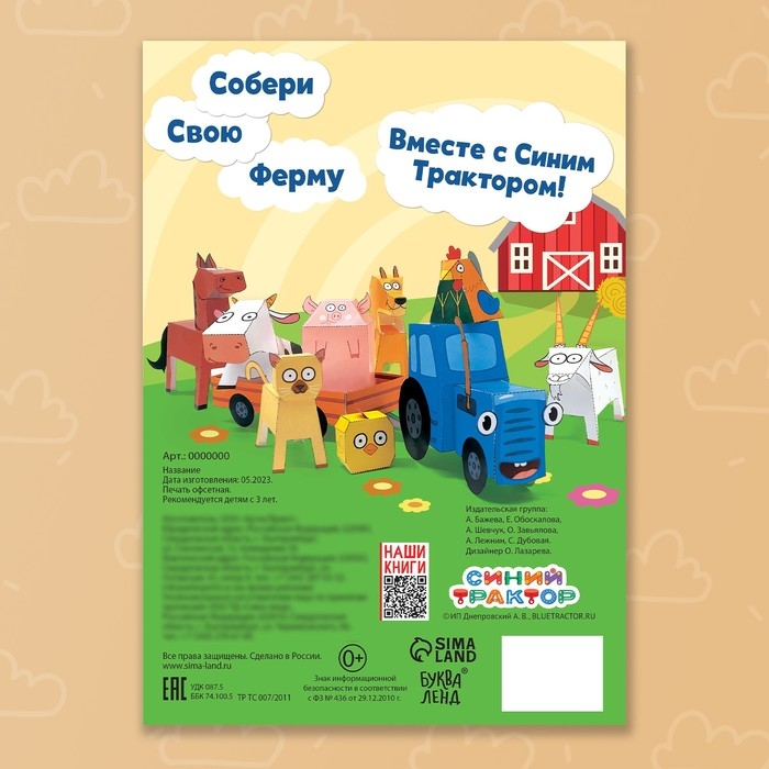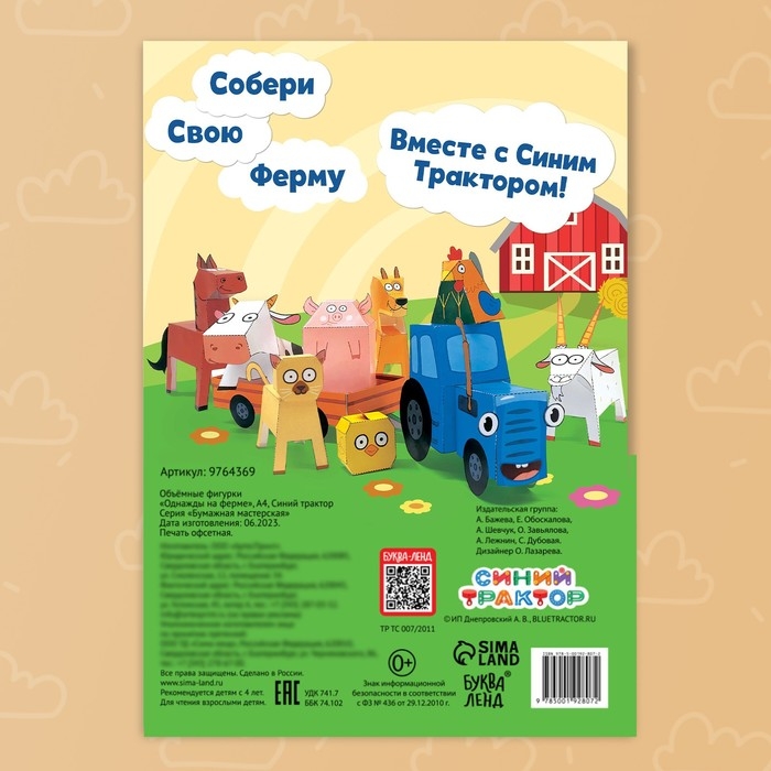 С книгой «Однажды на ферме» ребёнок отправится в увлекательный мир «Синего трактора» и изготовит самостоятельно 10 объёмных бумажных фигурок с героями любимого мультсериала.