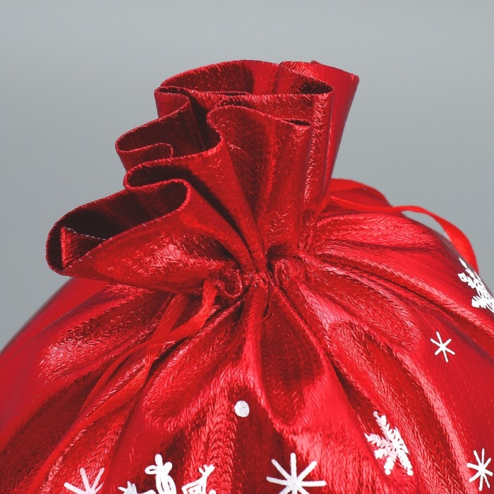 Мешочек подарочный плюш «Мешок Деда Мороза», снежинки, тиснение, 16 х 24 см +/- 1.5 см, Новый год