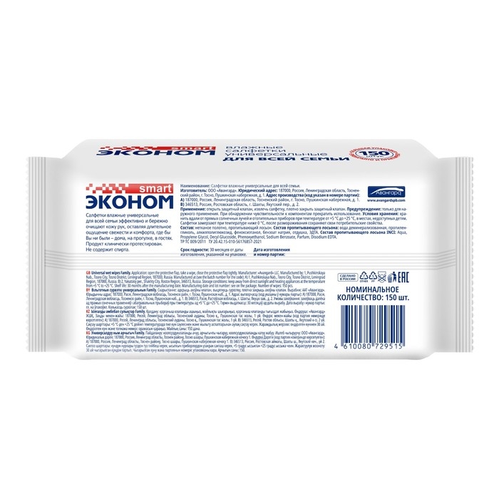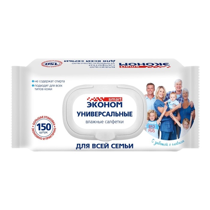 Влажные салфетки Эконом Smart для всей семьи, 150 шт.
