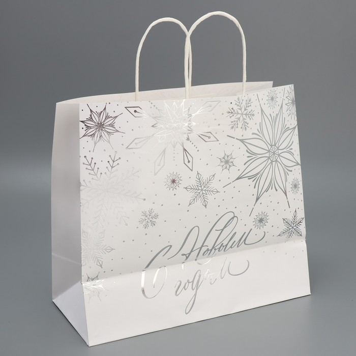 Пакет подарочный новогодний крафтовый Winter, 32 х 28 х 15 см, Новый год