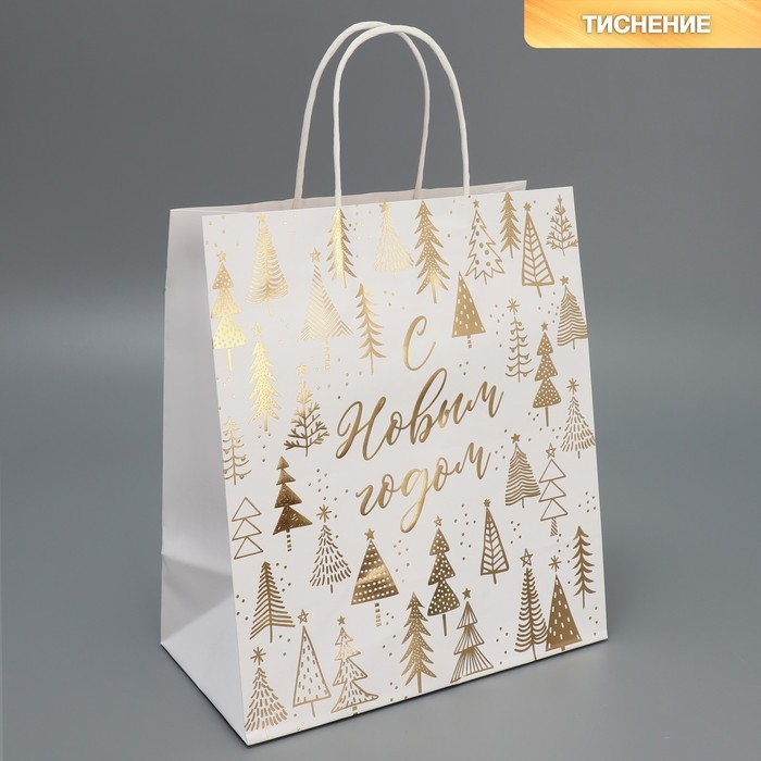 Пакет подарочный новогодний крафтовый «Новогодняя пора», 22 х 25 х 12 см, Новый год