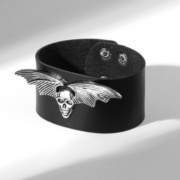 Браслет унисекс «Ремень» череп, цвет чёрный с серебром, 26 см