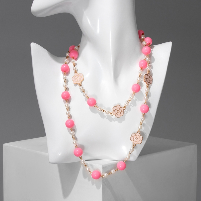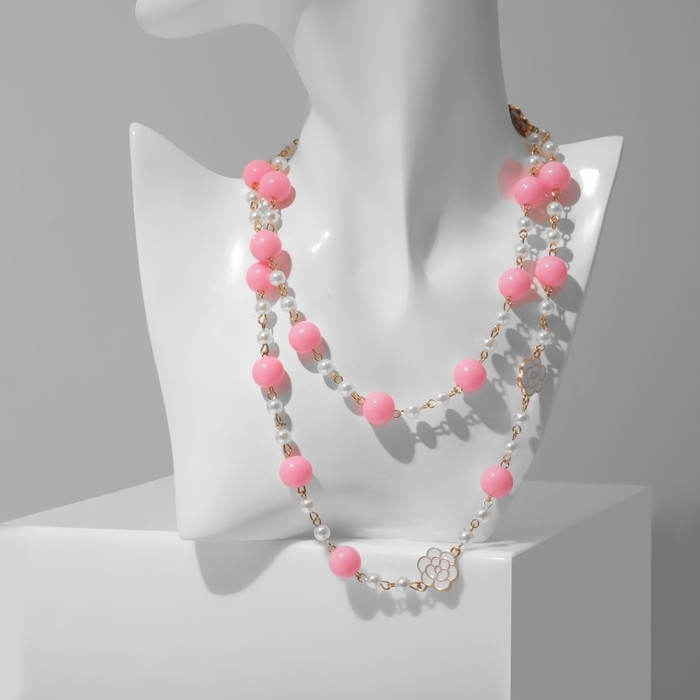 Бусы с жемчугом «Галантность» шар №6,12, цвет бело-розовый в золоте, L=80 см