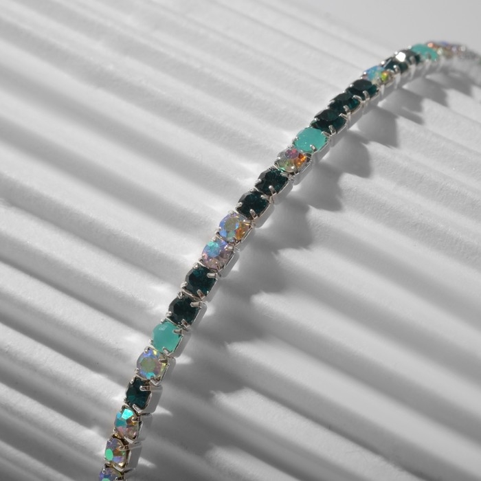 Браслет со стразами «Северное сияние» змейка, цвет радужный в серебре, L=18 см