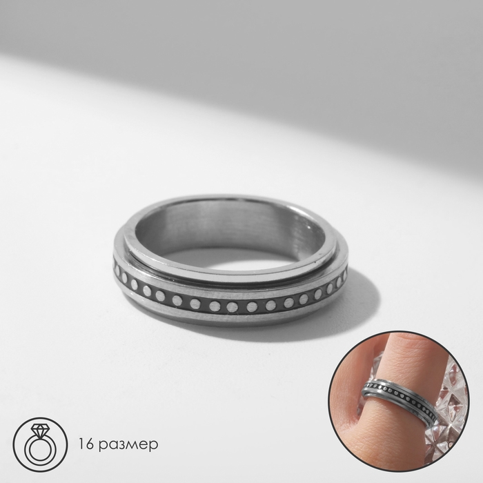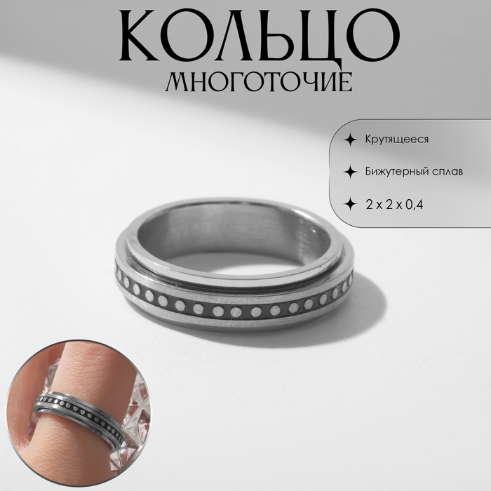 Кольцо «Многоточие» крутящееся, цвет серебро, 16 размер