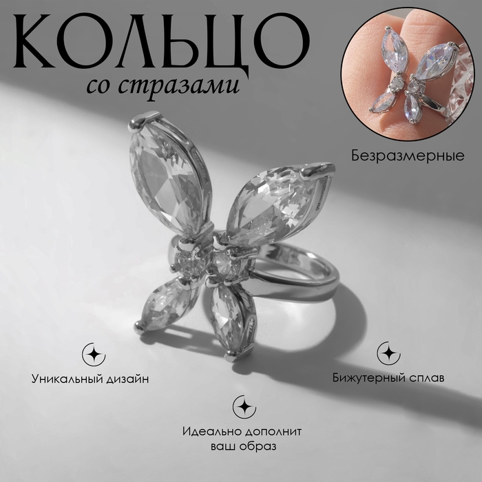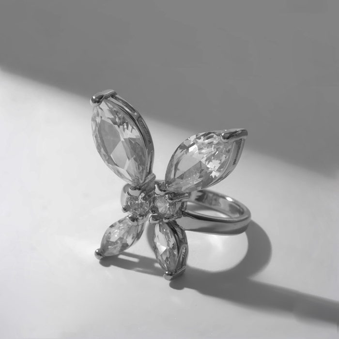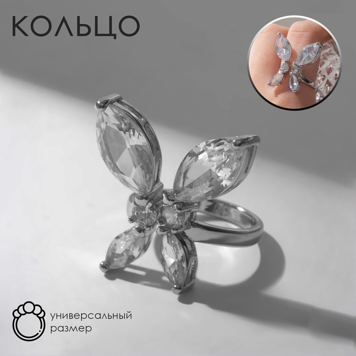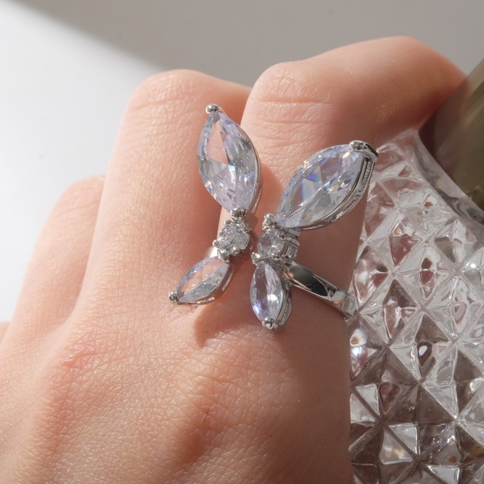 Кольцо «Бабочка» изящная, цвет белый в серебре, безразмерное