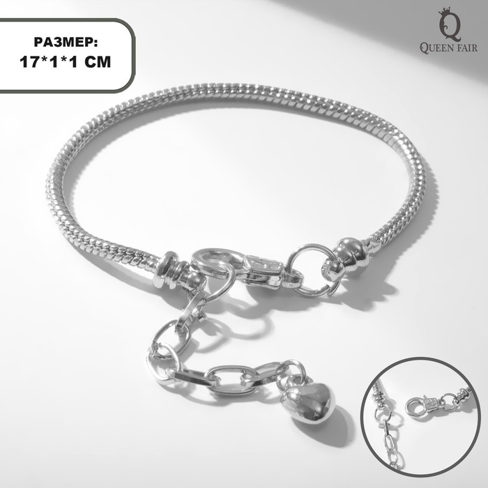 Основа для браслета «Карабин», цвет серебро, 17 размер + 5 см удлинитель