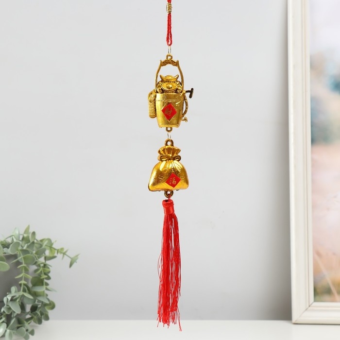 Подвеска пластик "Мешочек счастья и ведерко денег" 37 см