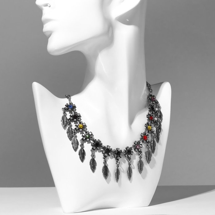 Колье «Индия» листья, цветное в чернёном серебре, 30 см