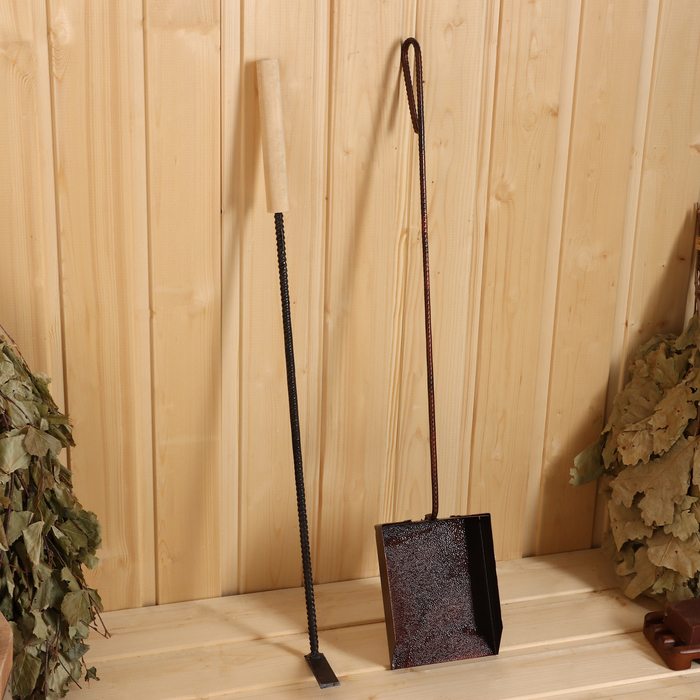 Набор совок для золы и кочерга с деревянной ручкой