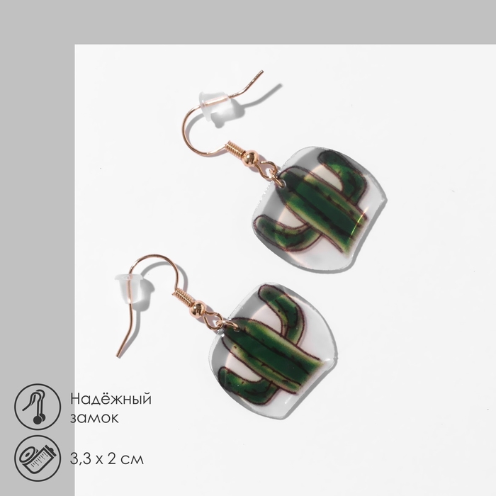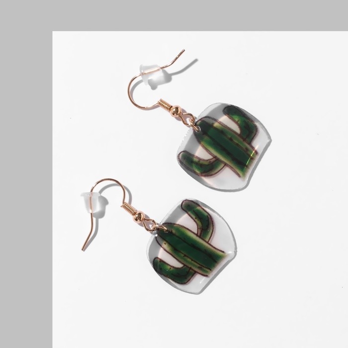 Серьги пластик «Кактусы» в квадрате, цвет зелёный