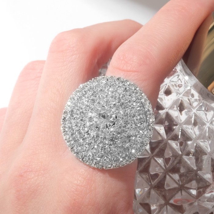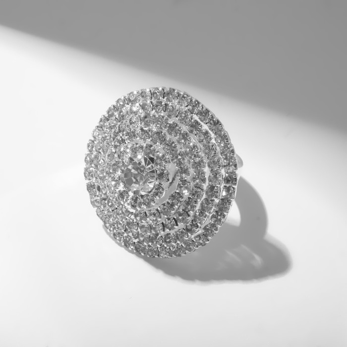 Кольцо «Лёд» круг, цвет белый в серебре, безразмерное