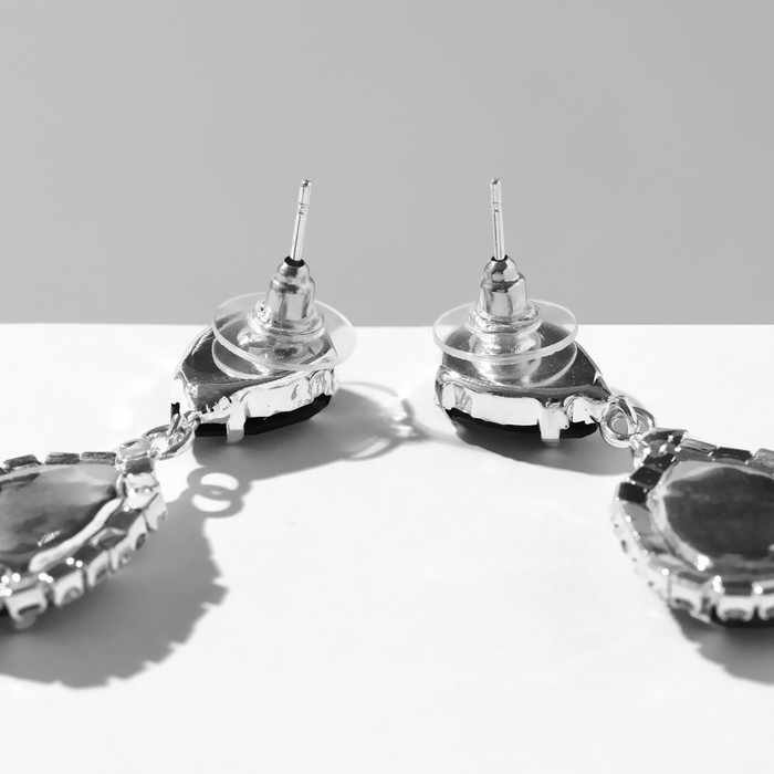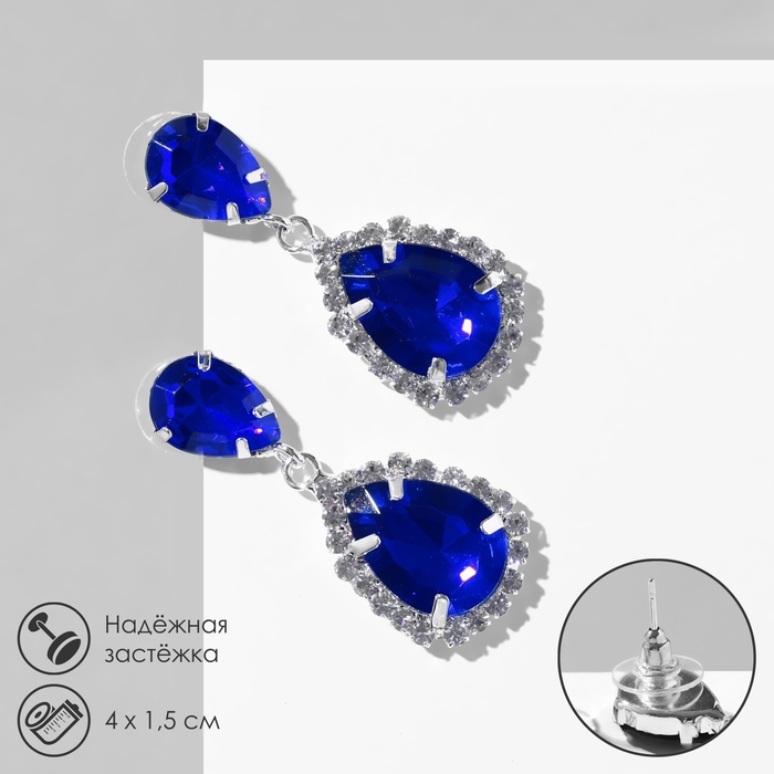 Серьги со стразами «Капля» элегия, цвет сине-белый в серебре