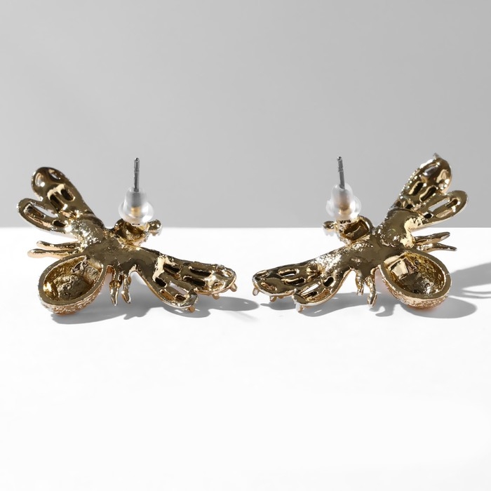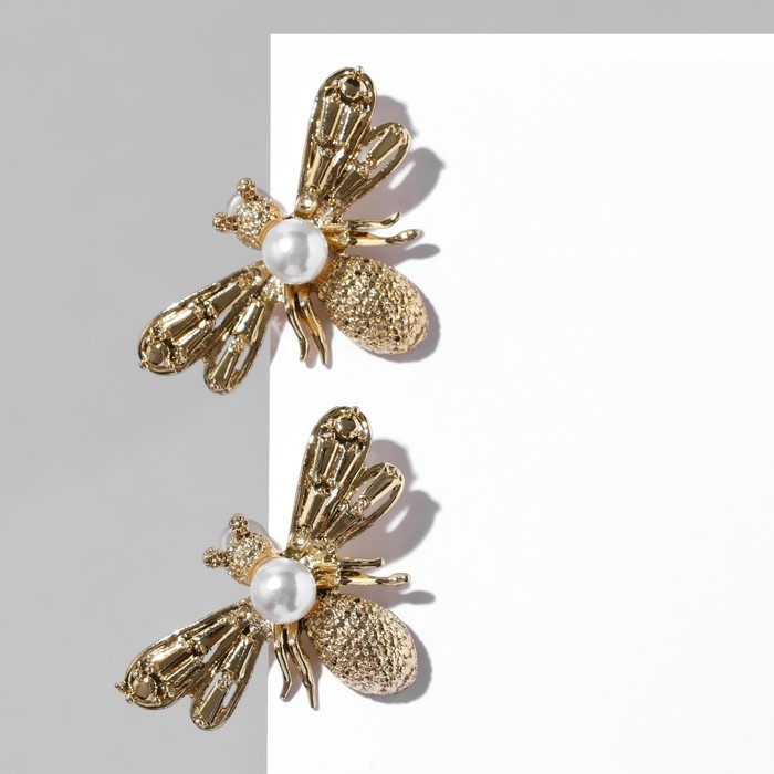 Серьги с жемчугом «Мухи» сказочные, цвет белый в золоте