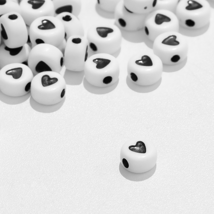 Бусина из акрила «Сердце» в круге, 7×4 мм, (набор 10 г), цвет чёрно-белый
