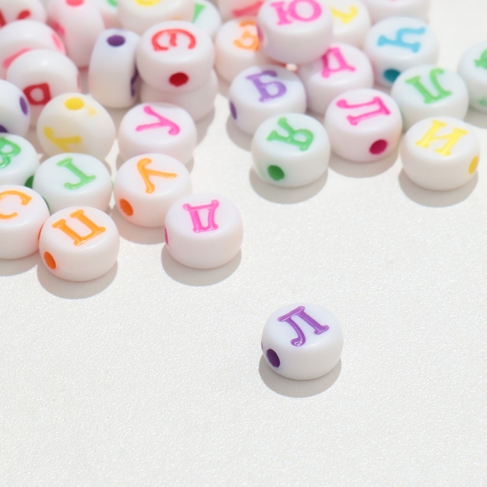 Бусина из акрила «Алфавит русский» МИКС, 7×4 мм, (набор 10 г), цвет МИКС