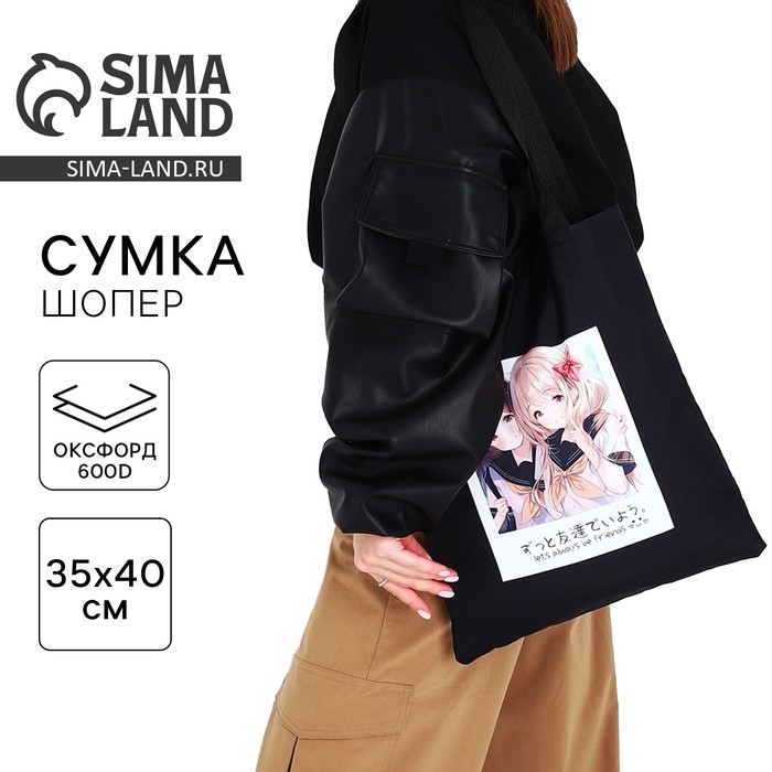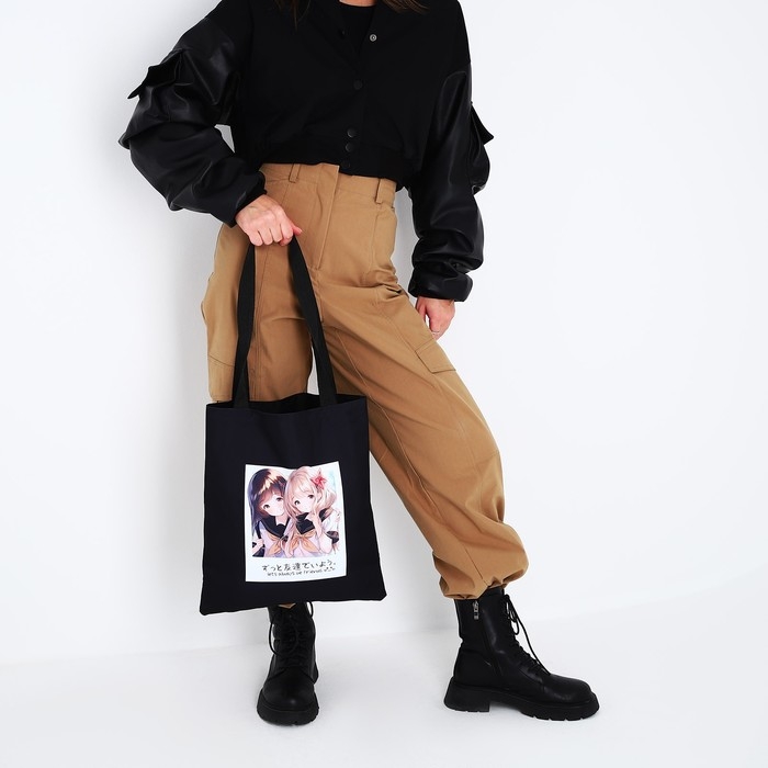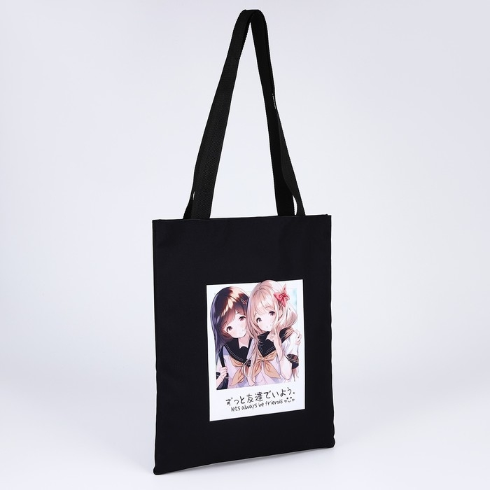 Шопер Friends, аниме, 35х0.5х40 см, отдел без молнии, без подклада, чёрный