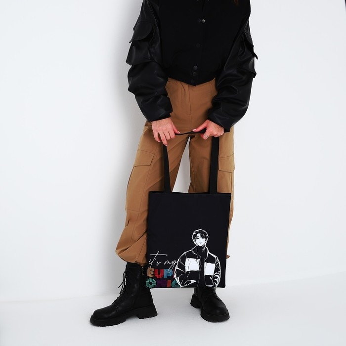 Шопер «Корея», 35х0.5х40 см, отдел без молнии, без подклада, чёрный