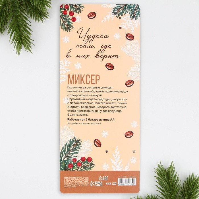 Он быстро и легко взбивает молоко и сливки до плотной и упругой пены, работает от двух батареек типа АА и не занимает много места.