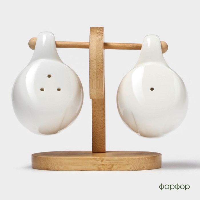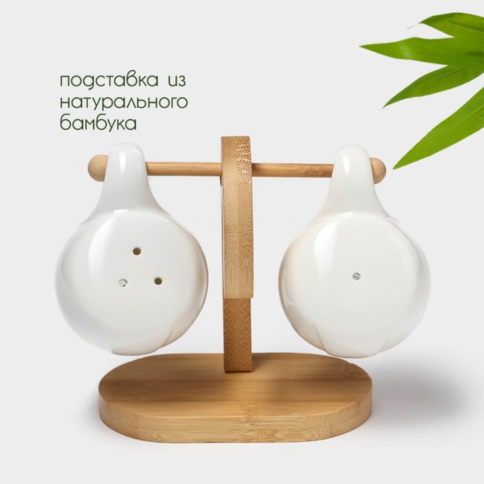 Набор фарфоровый для специй на бамбуковой подставке BellaTenero «Баночки», 2 предмета: солонка 110 мл, перечница 110 мл, держатель-подставка, цвет белый