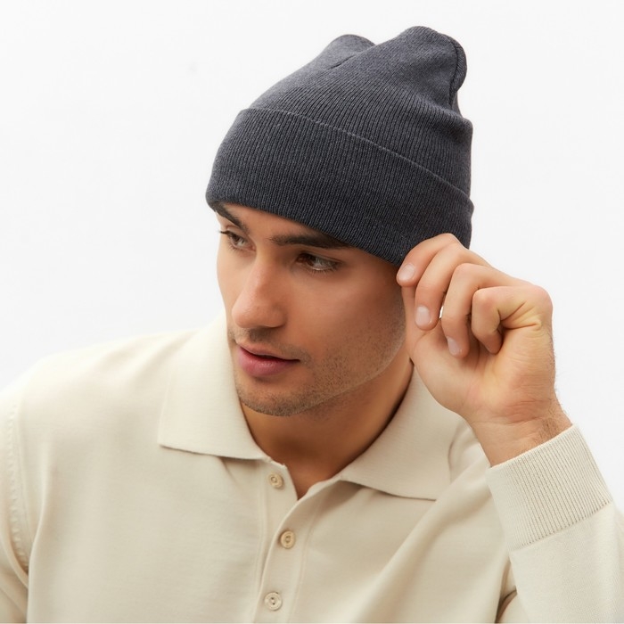 Шапка мужская двухслойная с отворотом, one size, цвет серый
