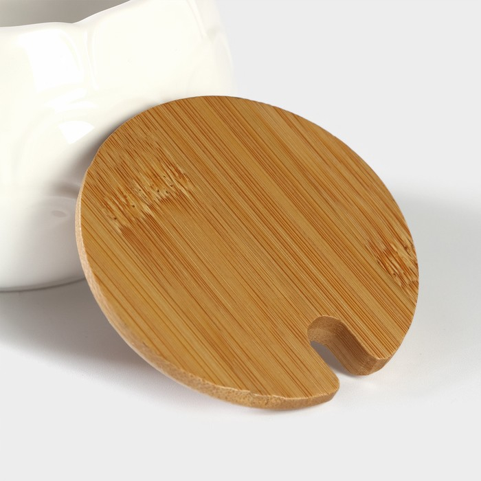 Сахарница фарфоровая с ложкой на бамбуковой подставке BellaTenero, 350 мл, цвет белый