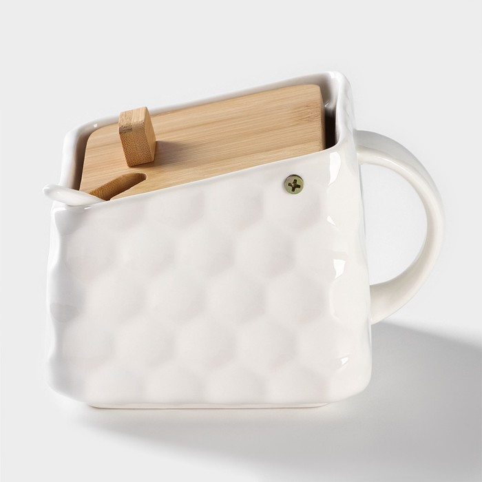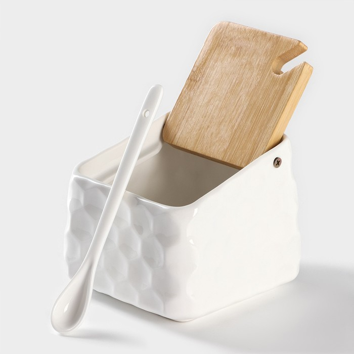Банка для хранения сыпучих продуктов с ложкой BellaTenero, 750 мл, 14,5×11 см, с бамбуковой крышкой, фарфоровые, цвет белый