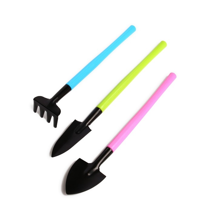 Набор садового инструмента, 3 предмета: грабли, 2 лопатки, длина 21 см, пластиковые ручки, МИКС
