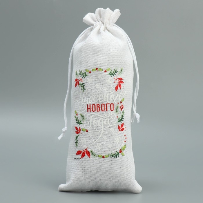 Мешок с термонаклейкой под бутылку «Счастье в моменте», 13 х 31 см +/- 1.5 см, Новый год