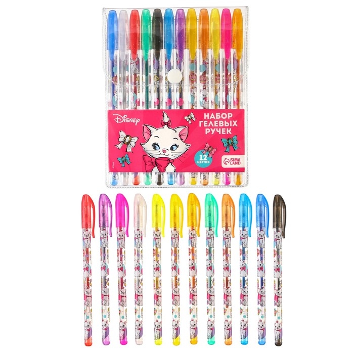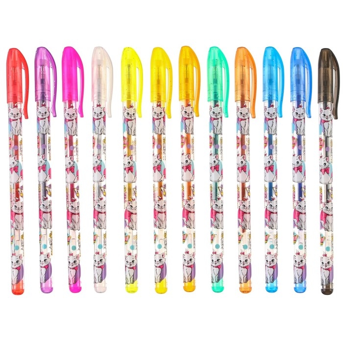 Ручка шариковая с блестками, 12 цветов, Коты Аристократы