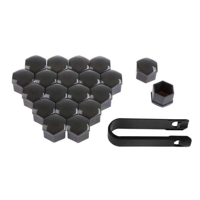 Защитный колпачок колесной гайки, 17 мм, съемник, набор 20 шт, серый