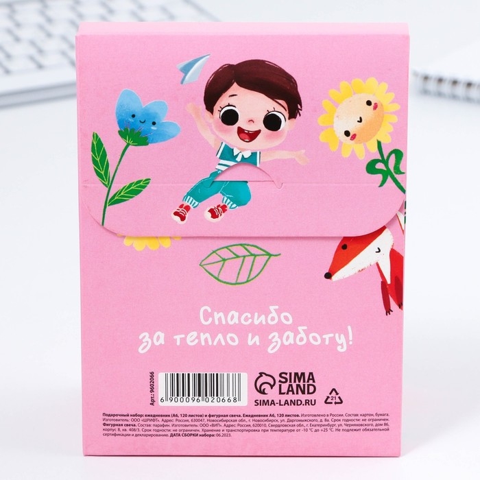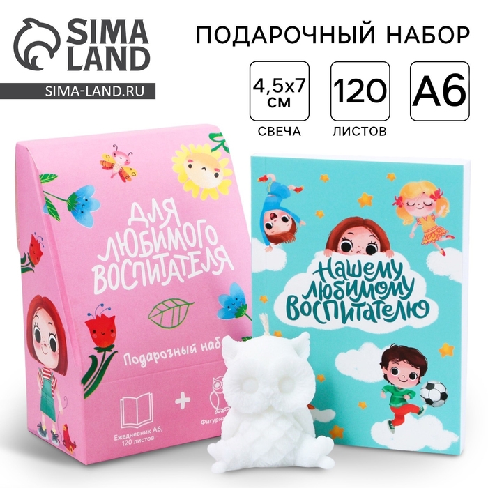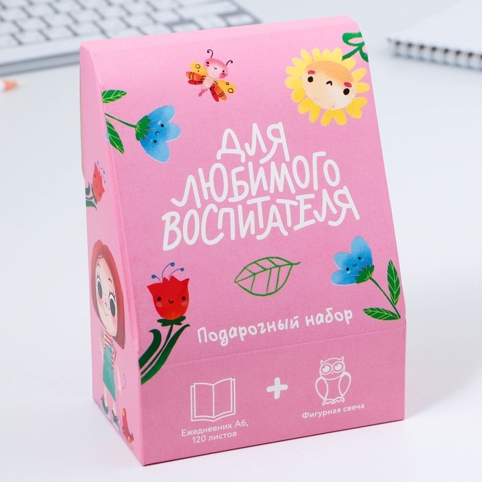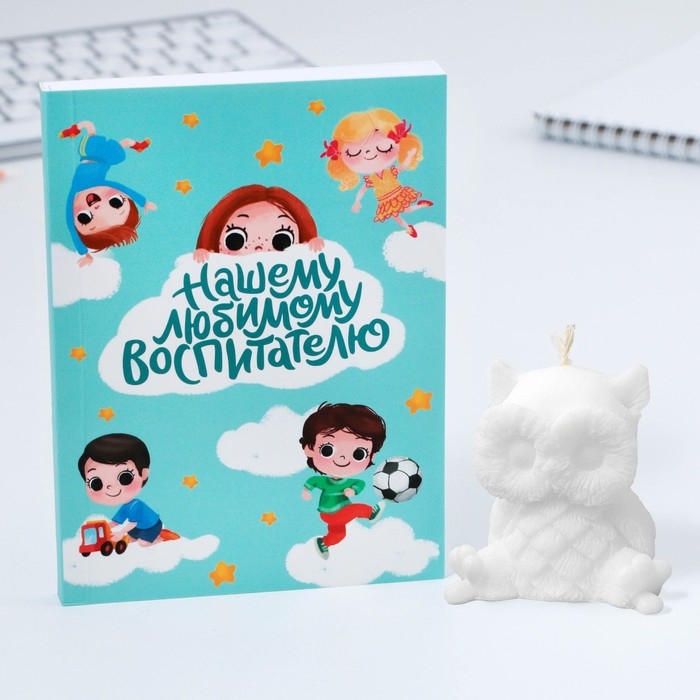 Подарочный набор ежедневник А6, 120 листов и фигурная свеча «Воспитателю: Для любимого воспитателя»